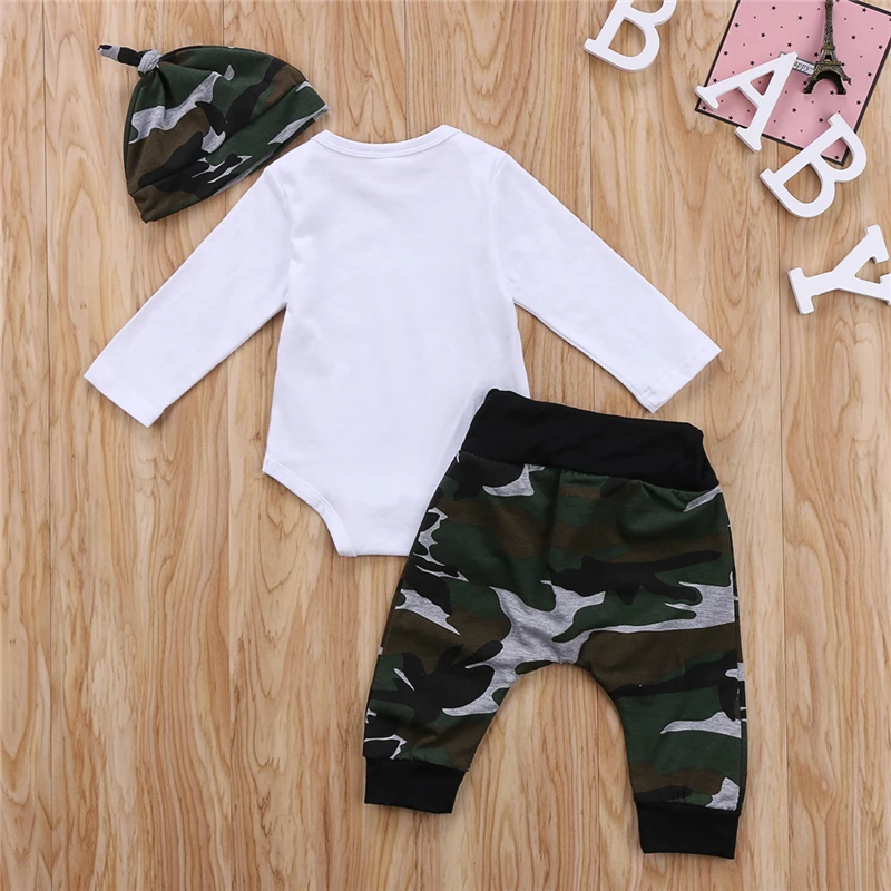 Good Offer of 2019 Brand New 3Pcs Set Newborn Toddler Infant Baby Boy Long Sleeve Tops Romper Camouflage Pants Ha