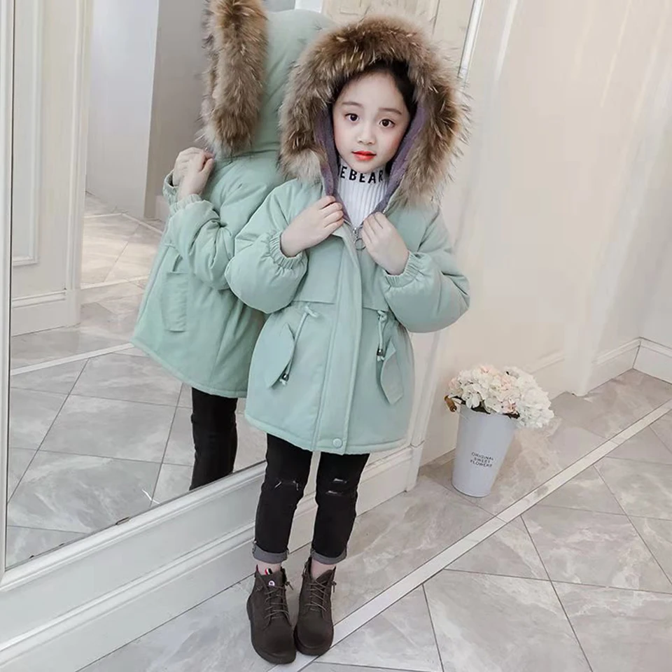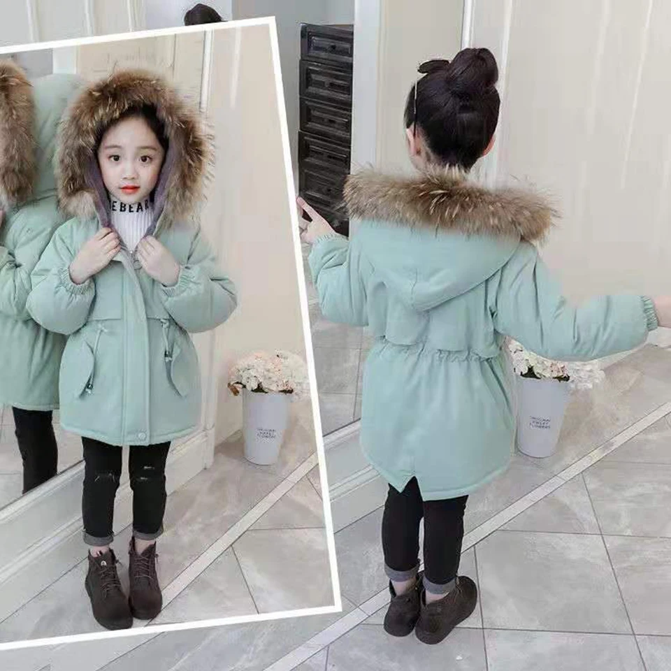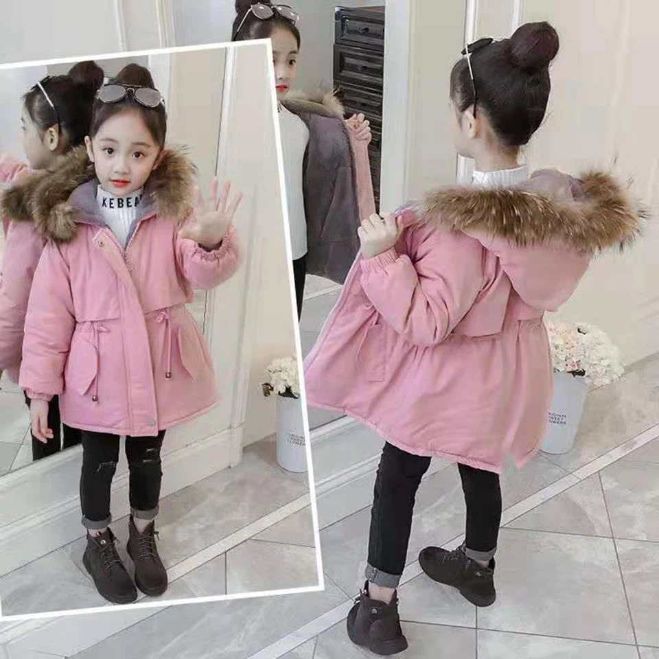 Good Offer for New Style Winter Girls Plus Velvet Girls Coat Kids Solid Color Hooded Girls Outwear Warm Casual Bab