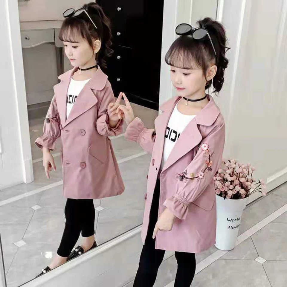 Special Price of 2 Colors For 3-12 Yrs New Style Spring Girls Outwear High Quality Autumn Baby Girl Floral Pattern C
